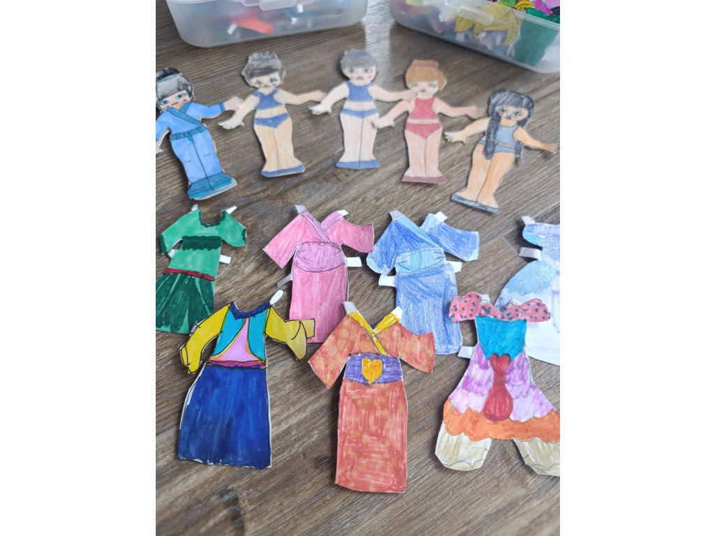 Během pár dní se naučily perfektně vystřihovat. Precizně vybarvovat. Navrhovat úžasné barevné kombinace. Vymyslet technicky složitější oblečky.