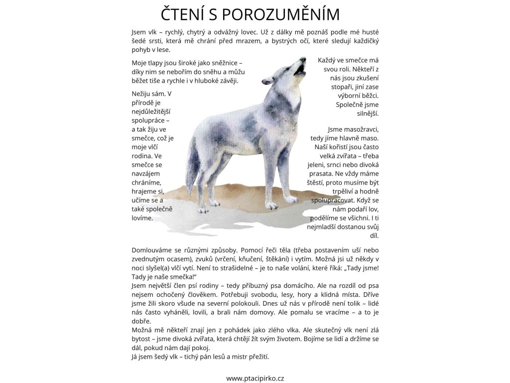 - O vlcích se dozvíš všechno - od anatomie, přes životní cyklus až po stravu a informace, kde se s vlkem můžeš setkat třeba ve filmu a literatuře